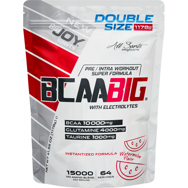 BIGJOY BCAABIG antrenman sırasında performansınızı artırması, antrenman sonrasında ise yenilenmeyi desteklemesi için özel olarak formüle edilmiştir. Benzersiz bir formüle sahiptir: 1 servisinde 10 gram BCAA, 4000 mg glutamin, 1000 mg taurin ve elektrolitler içermektedir.