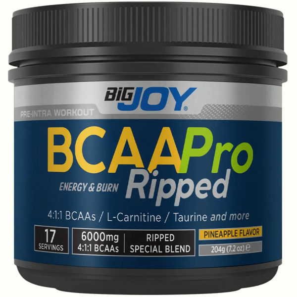 Bigjoy Bcaapro Ripped, her porsiyonunda 4:1:1 BCAA oranına sahip 6000 mg BCAA sunar.
