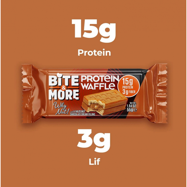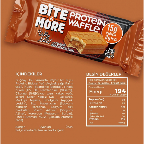 Bite&More Fındık Kremalı Protein Waffle 55 Gr x 12 Adet Detaylı Açıklama