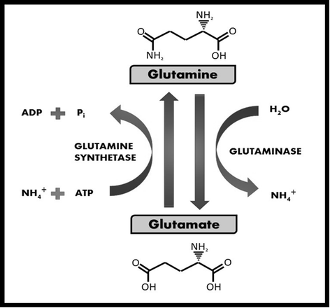 Hücre içi enerji üretim basamağından biri olan Krebs metabolik döngüsünde önemli bir ara metabolit olarak glutaminin, kas liflerinde ( özellikle de dayanıklılığı uzatan Tip 1 denilen yavaş kasılan aerobik lifler) fosfokreatin ve glikojenin yedeklenmesine yardımcı olduğu düşünülmektedir.